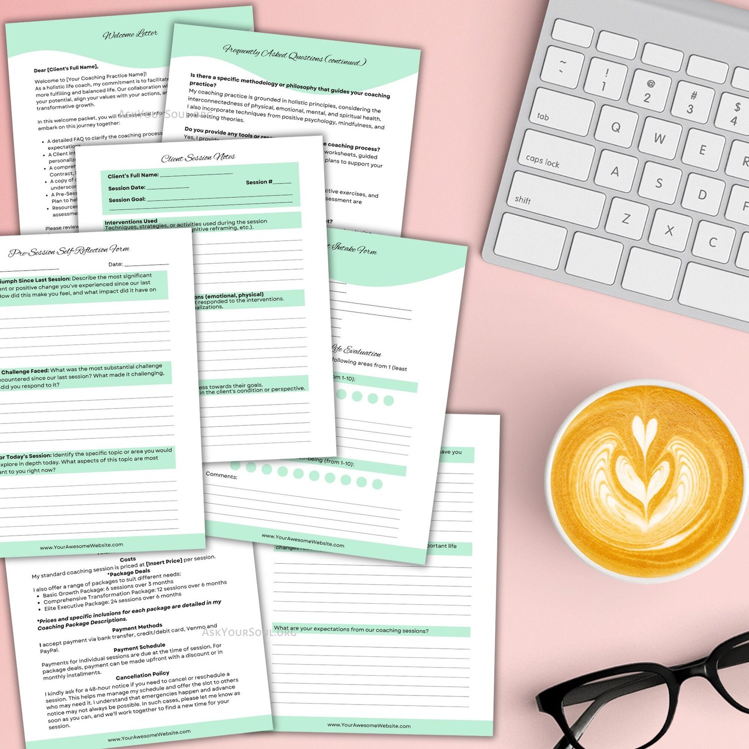 As someone who has taken many life coaching courses in the past, I tried to cover all the possible forms you would need as a life coach (please refer to the images and read below for more info on what's included).