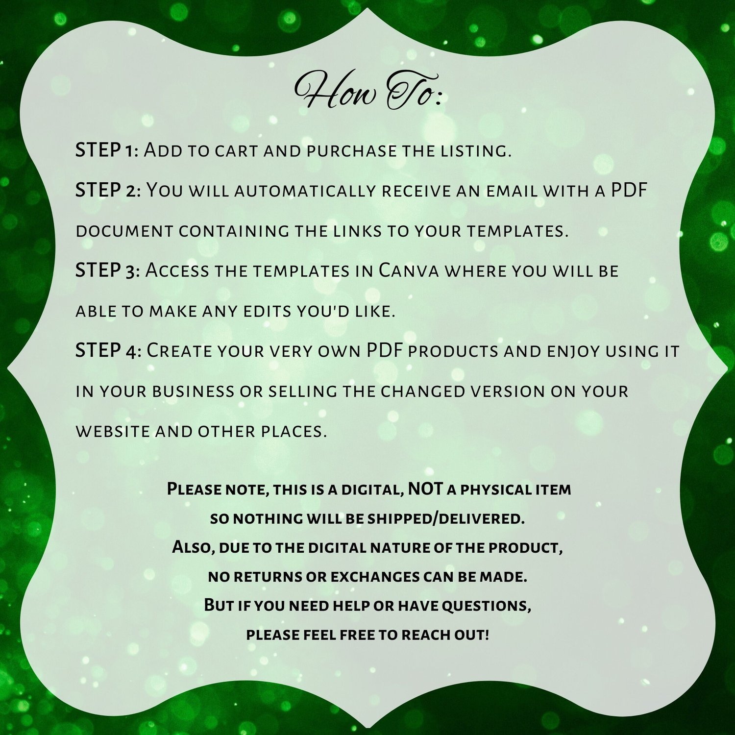~ Can't sell as an editable template, only as a PDF.