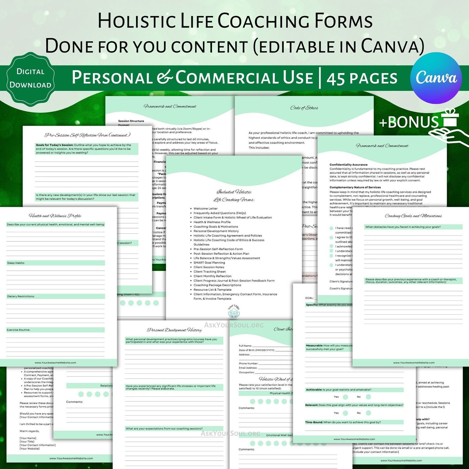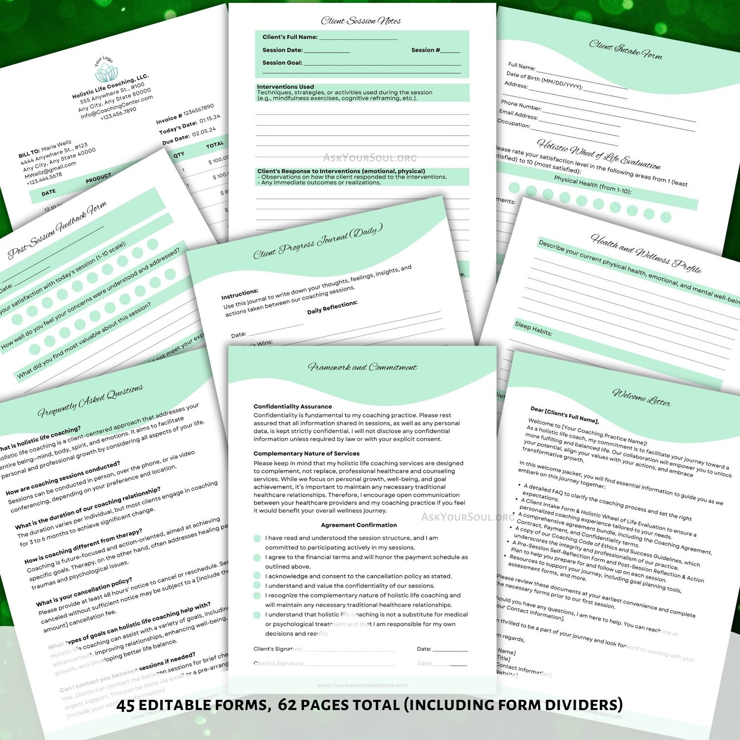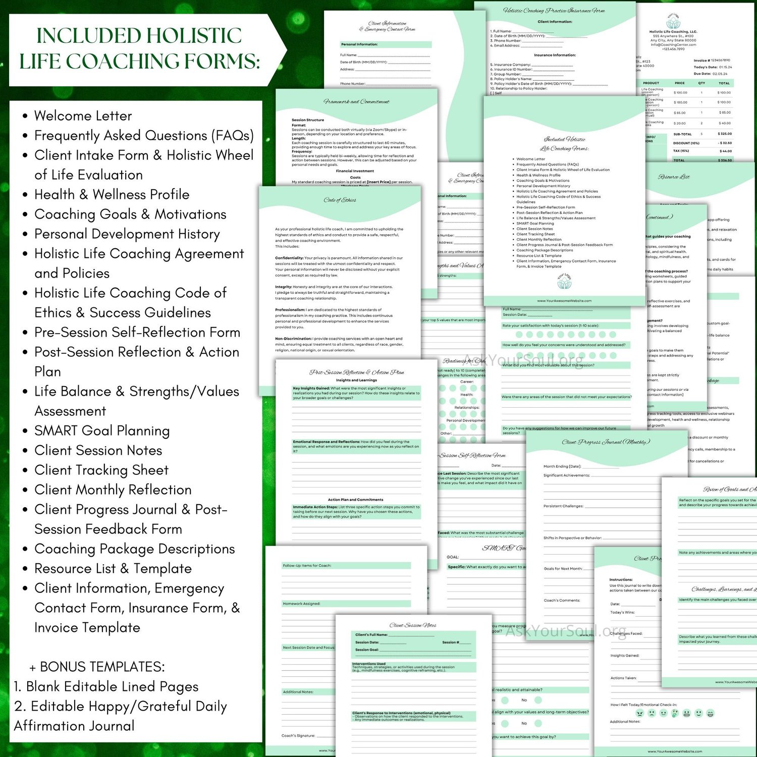 PLR Editable Holistic Life Coaching Forms