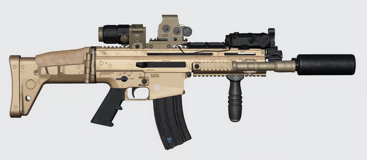 The FN Herstal MK16 (commonly known as the SCAR-L / Mk 16) is a modern, modular 5.56×45mm combat rifle built for adaptability, reliability, and ease of configuration. Designed for special operations and frontline units, the MK16 combines a short-stroke gas piston system with quick-change barrels, ambidextrous controls, and broad attachment support making it ideal for roles from CQB to patrol and designated marksman support. Modeled for MILSIM, the MK16 brings realistic handling, modular customization, and high-fidelity visuals to your arsenal.