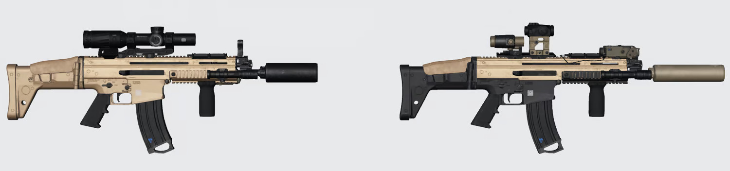 - Visuals: High-detail model, realistic textures, and customizable finishes (black, FDE, camo variants)
