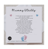 This card is perfect for the celebration of a new baby. Perfect for Mum and Dad to treasure for years to come. Printed with a Pink and Blue footprint and a sweet little message which reads,
