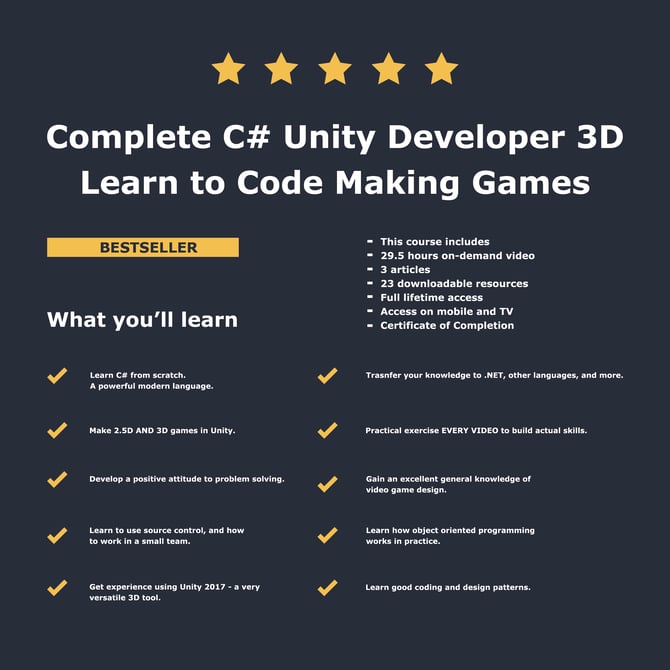 You will be able to obtain a Complete C# Unity Developer 3D Certificate.