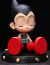 The figure captures Astro Boy in a moment of peaceful rest, with his eyes closed and his chest subtly opened to reveal his vibrant mechanical heart core. It’s a powerful visual commentary on the robot's longing for humanity.