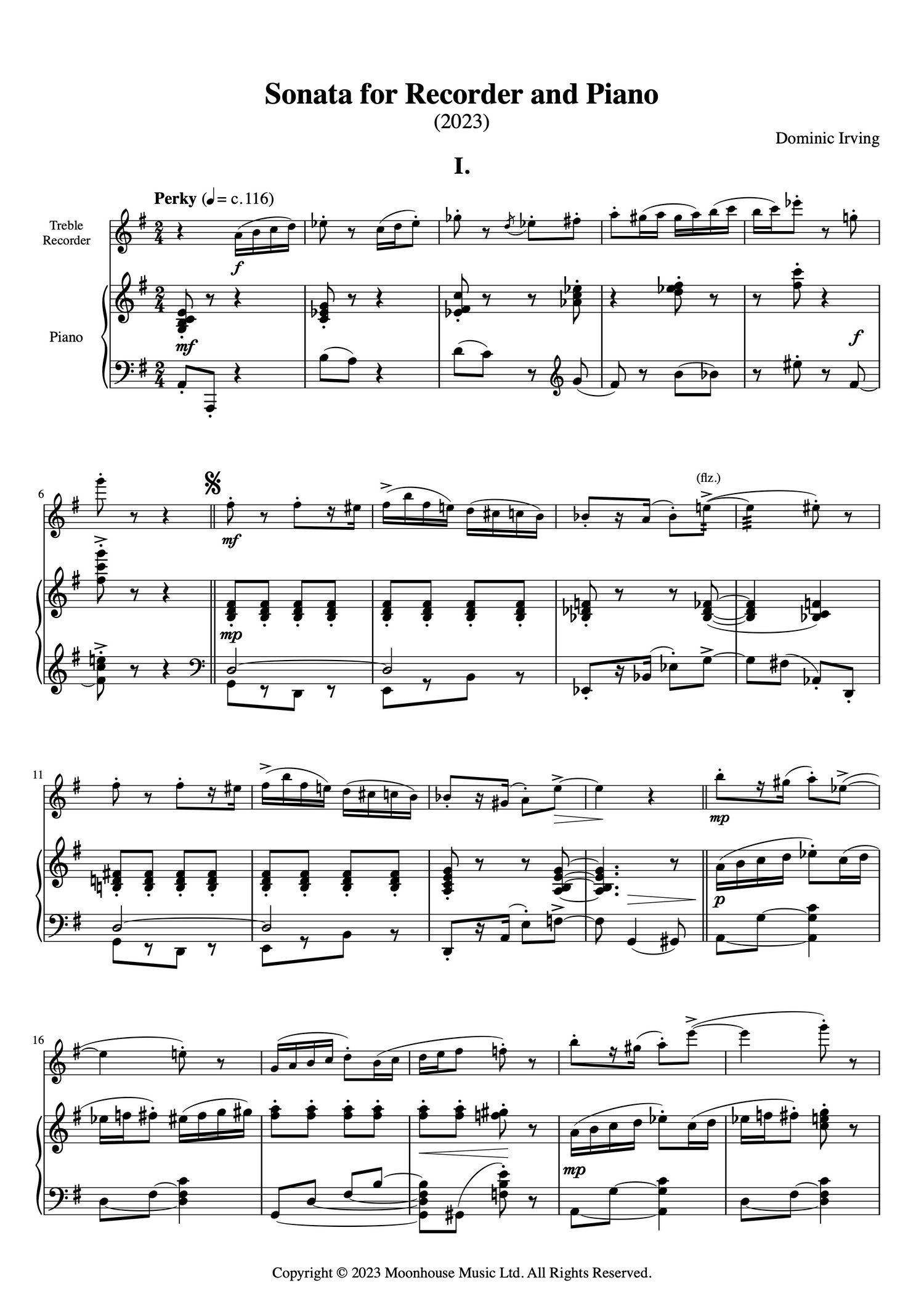 Recorder Sonata (treble/descant recorder and piano) for advanced players. Dominic Irving