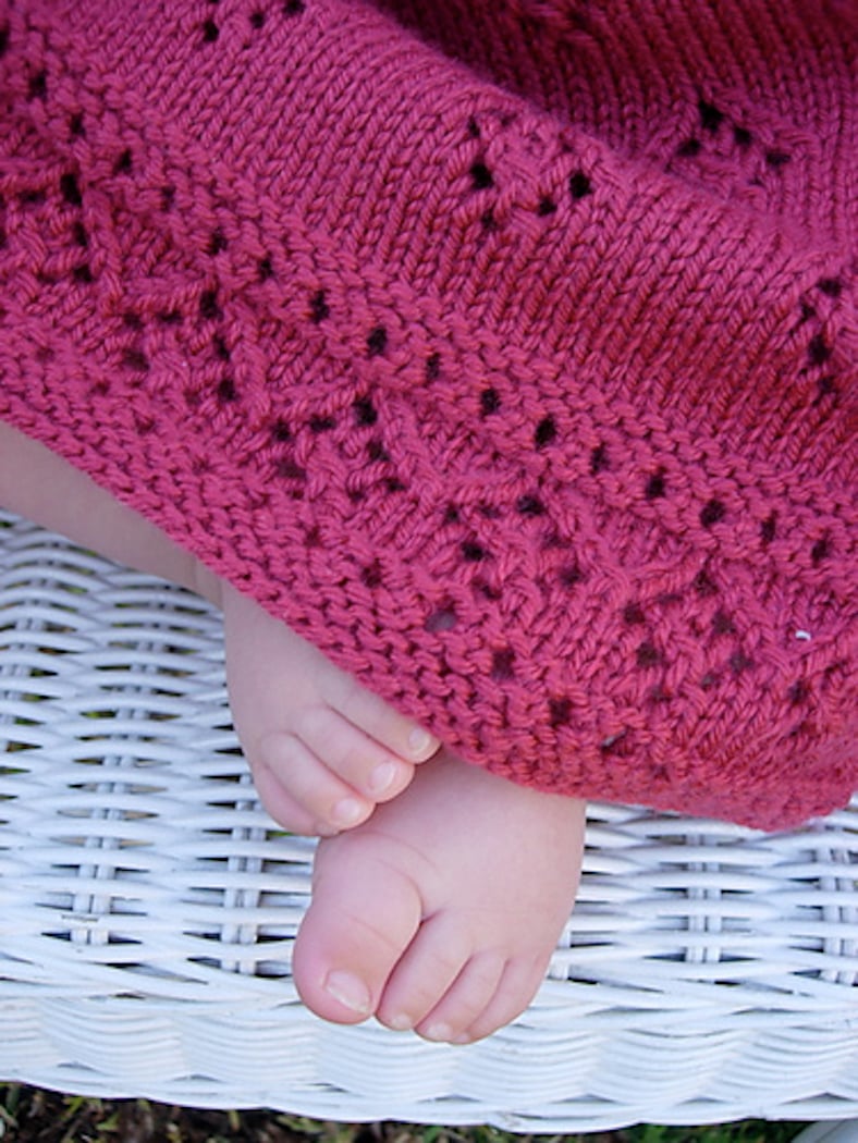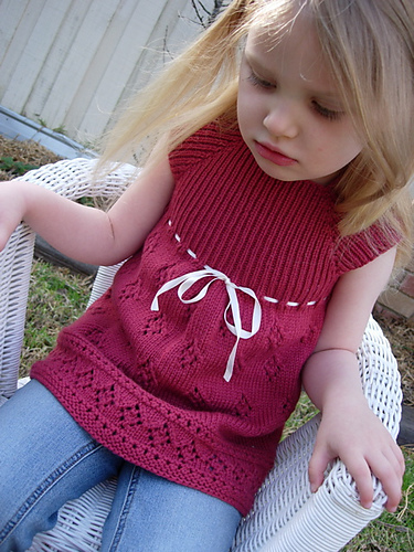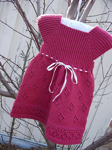 This is a seamless garment knit entirely in the round on circular needles. It is knit from the top down using raglan shaping for the bodice construction.