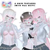 ﹕ Colors: 4 Hair Textures (Blonde, White, Brunette, Black and Pink with Hue Shift) and Black Materials toggle.