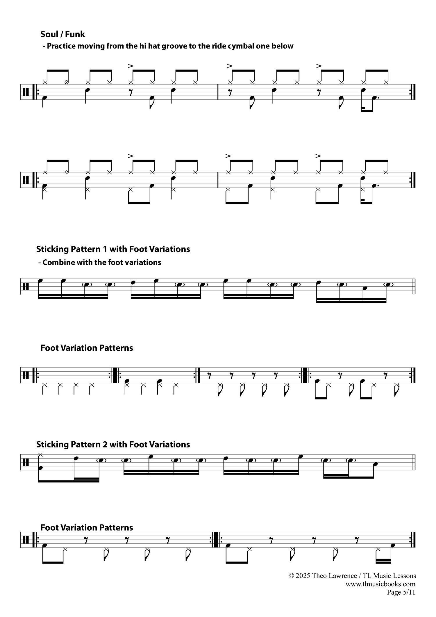 This book has been written for my students that are generally in high school and studying Grade 3-5 and maybe some grade 6 pupils too. The student will have surpassed Beginner level books and perhaps worked on 40 Beats and Fills Book 3, but now they have a more rounded book to work from with snare and rudimental exercises, and more 4 way coordination and sticking patterns.
