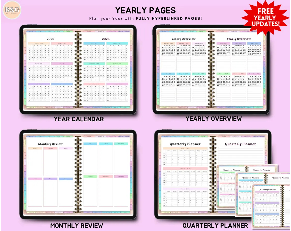 All In One Digital Planner 2025, 2026, 2027 Yearly Updates, Digital Journal, Digital Goodnotes Template, Weekly, Daily Planner, Monthly plan