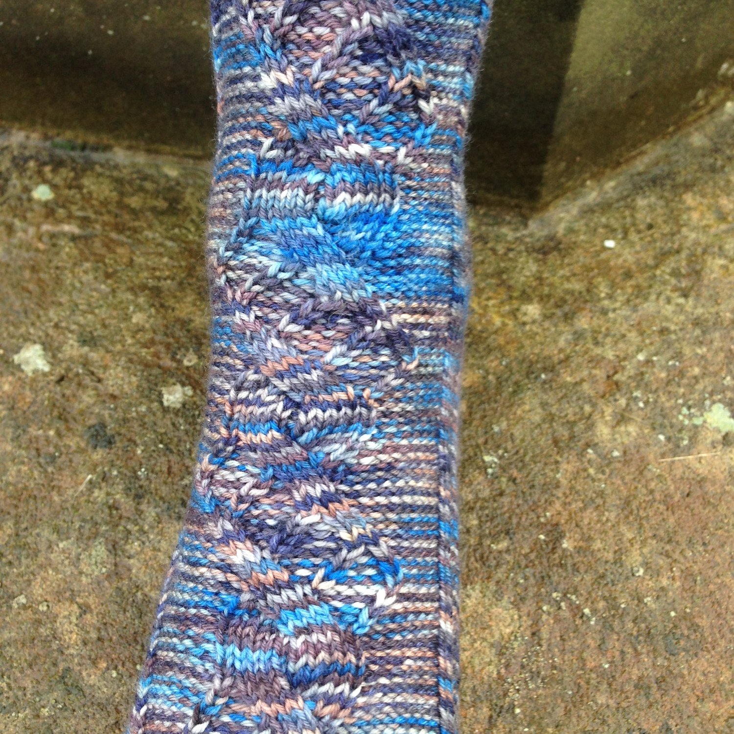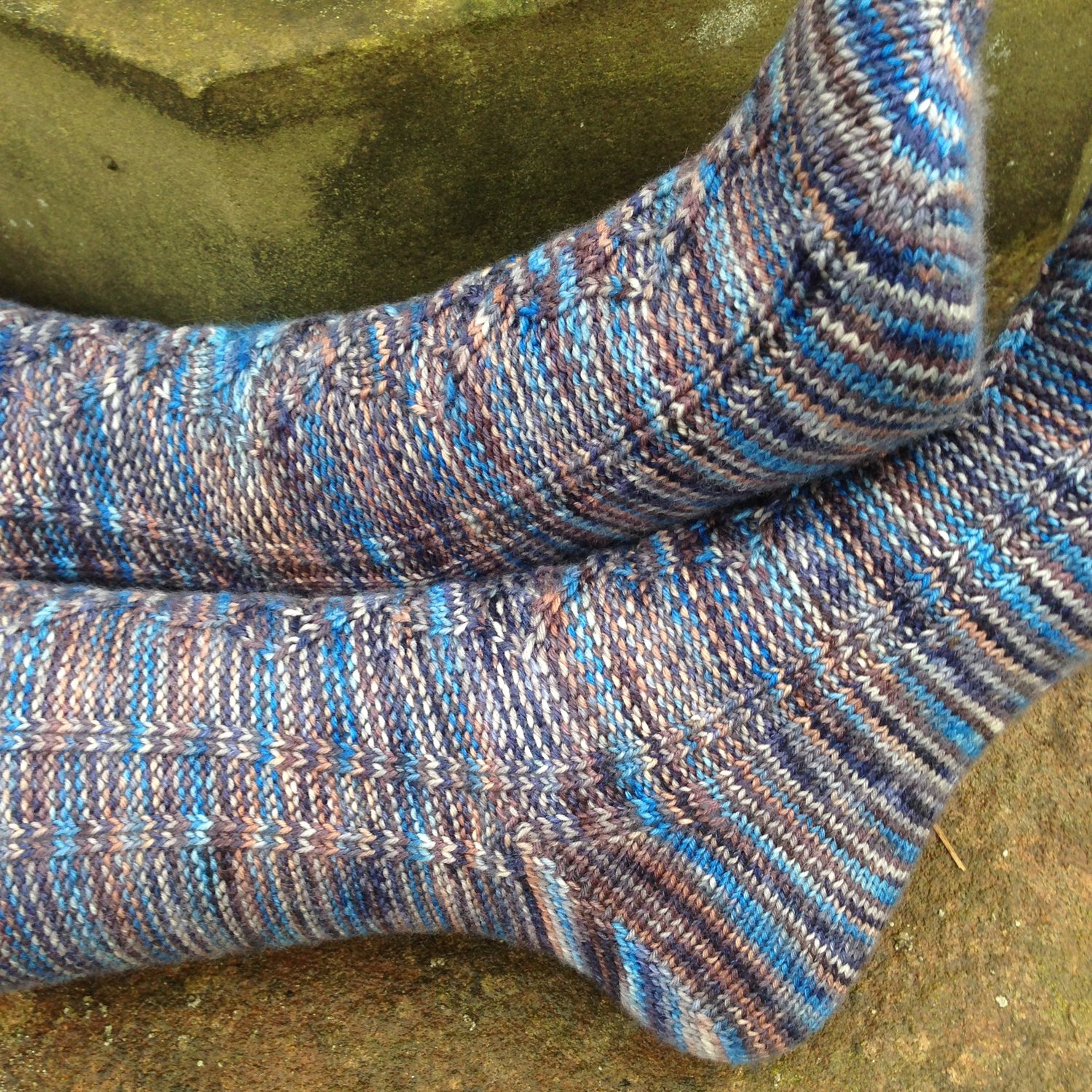 These socks are knit using the magic loop method (although the purchaser could easily adapt it for two circulars or double points).
