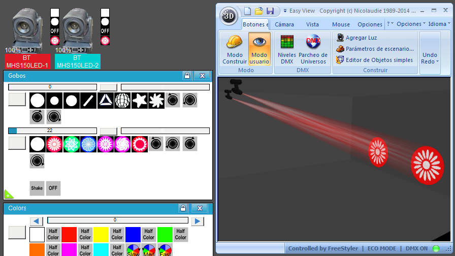 - Esta librería NO reemplaza al Fixture de Freestyler o QLC+, sólo es para ver la representación 3D. Es decir, HAY QUE TENER YA EL FIXTURE DE FREESTYLER o de QLC+ para controlar el equipo real.