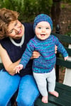 The textured sample shown is the 1-2yr size on a 7month old baby (she is on the larger size clothing wise) and there is a good amount of ease in this size for her to grow into it. The plain sample shown is in the 6-12m size also shown on the same 7month old baby and there again there is still a little ease, but not as much, so this will fit her nicely through this coming winter season while the other size should still fit her next winter as well.