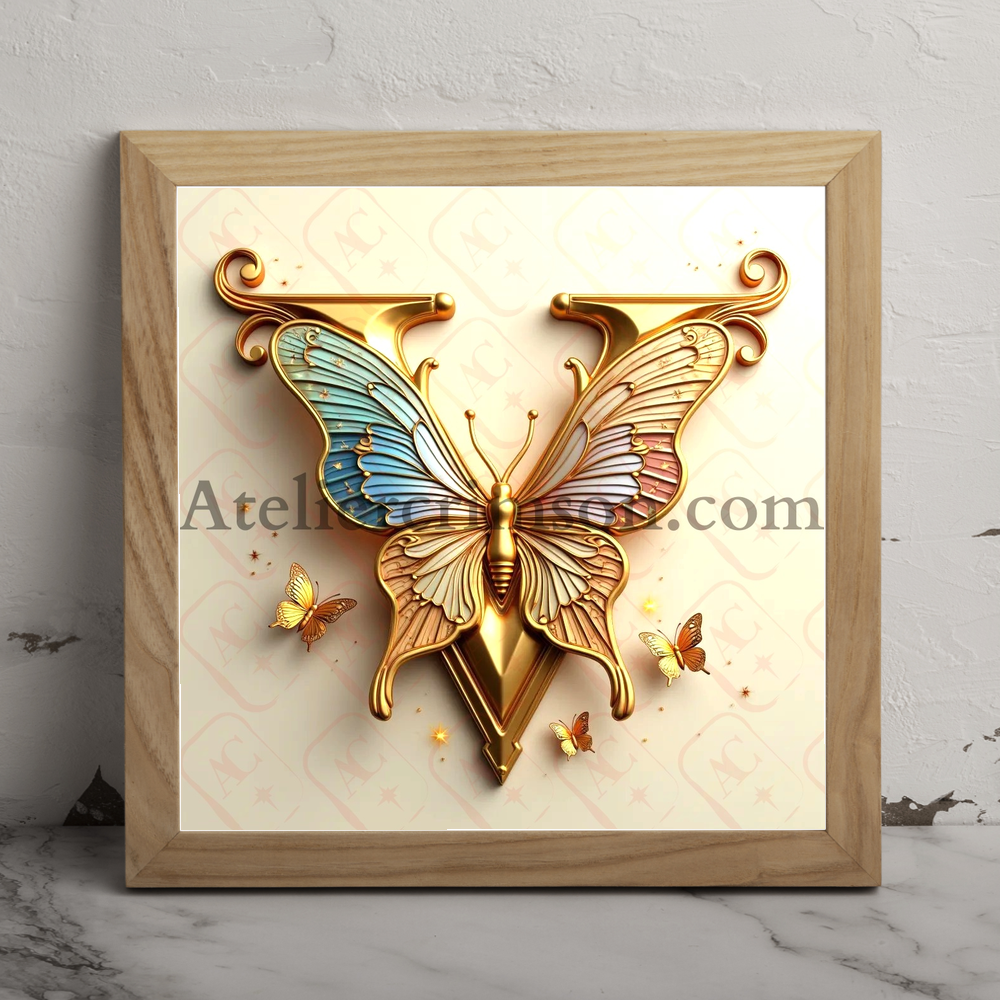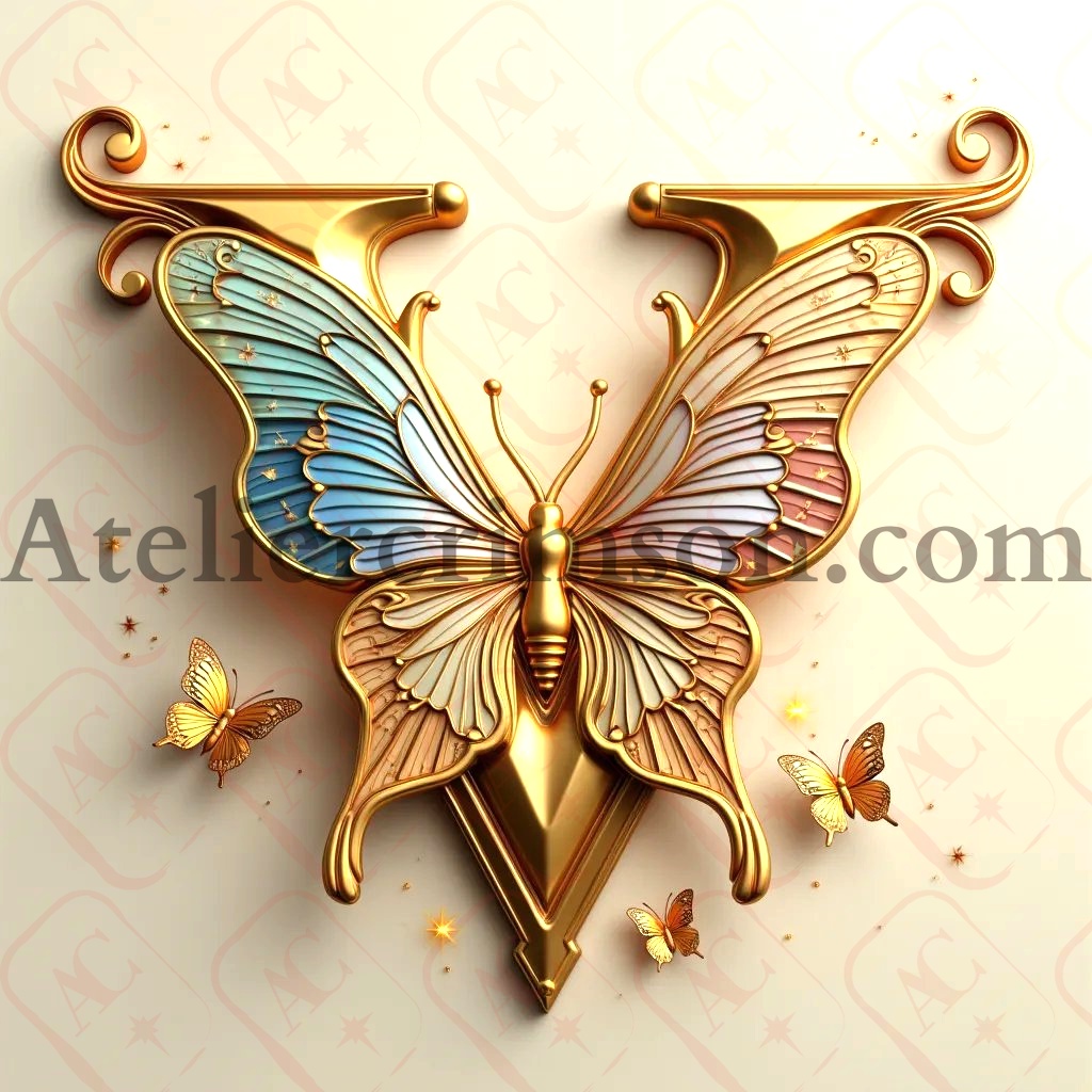 The letter V golden luxury butterfly .Download Now this high quality AI-generated image, perfect for adding a touch of luruxy and creativity to any space.