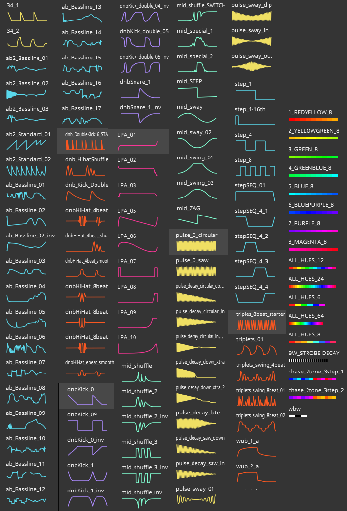 Throughout my career I have been testing and refining a library of presets envelopes, palettes, FX and sources.