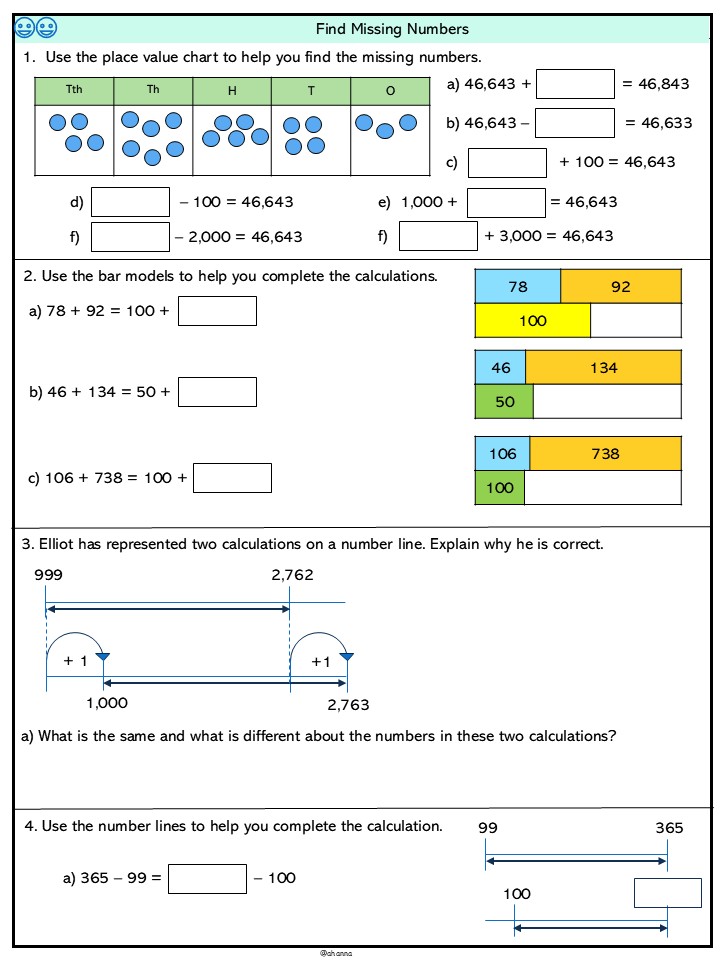 They need to understand that when two numbers are increased by the same amount the difference remains the same, and that the total of two numbers remains the same if one number has been increased by an amount and the