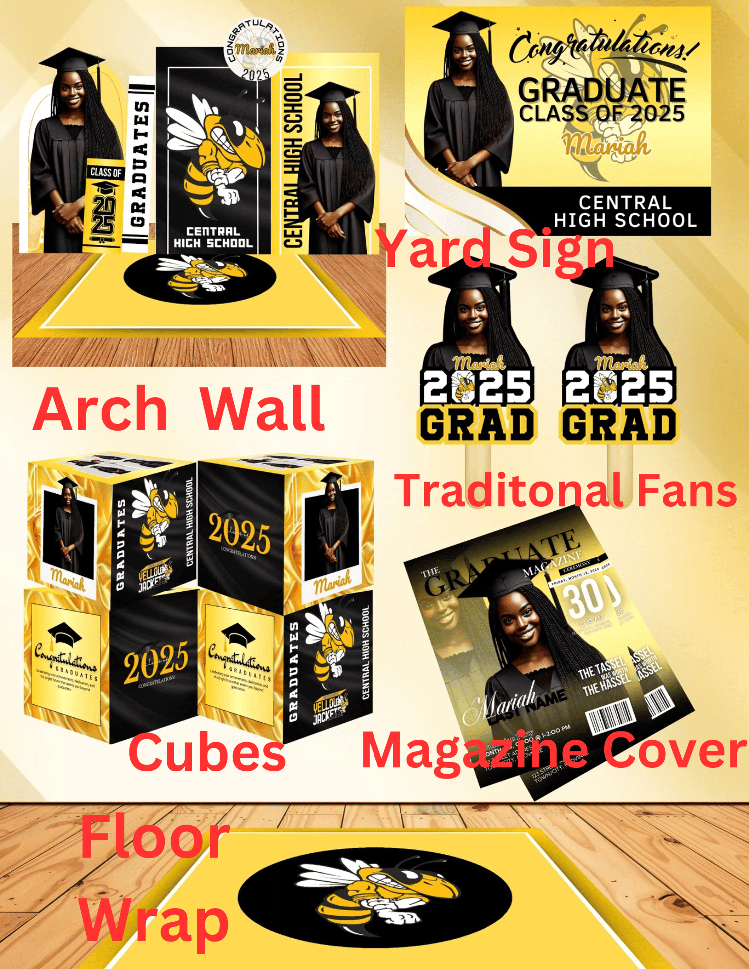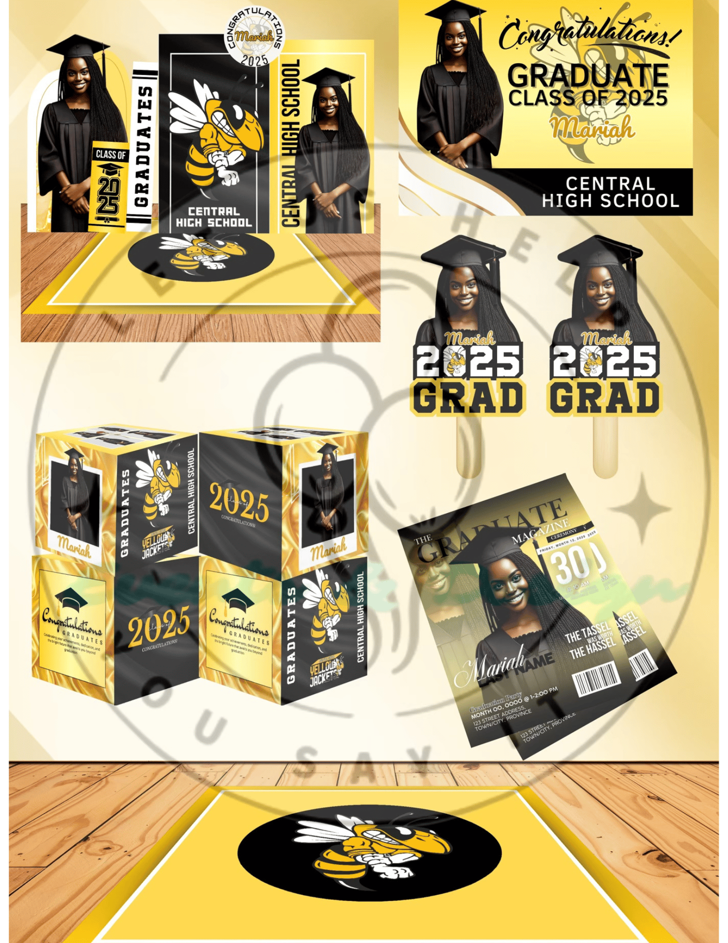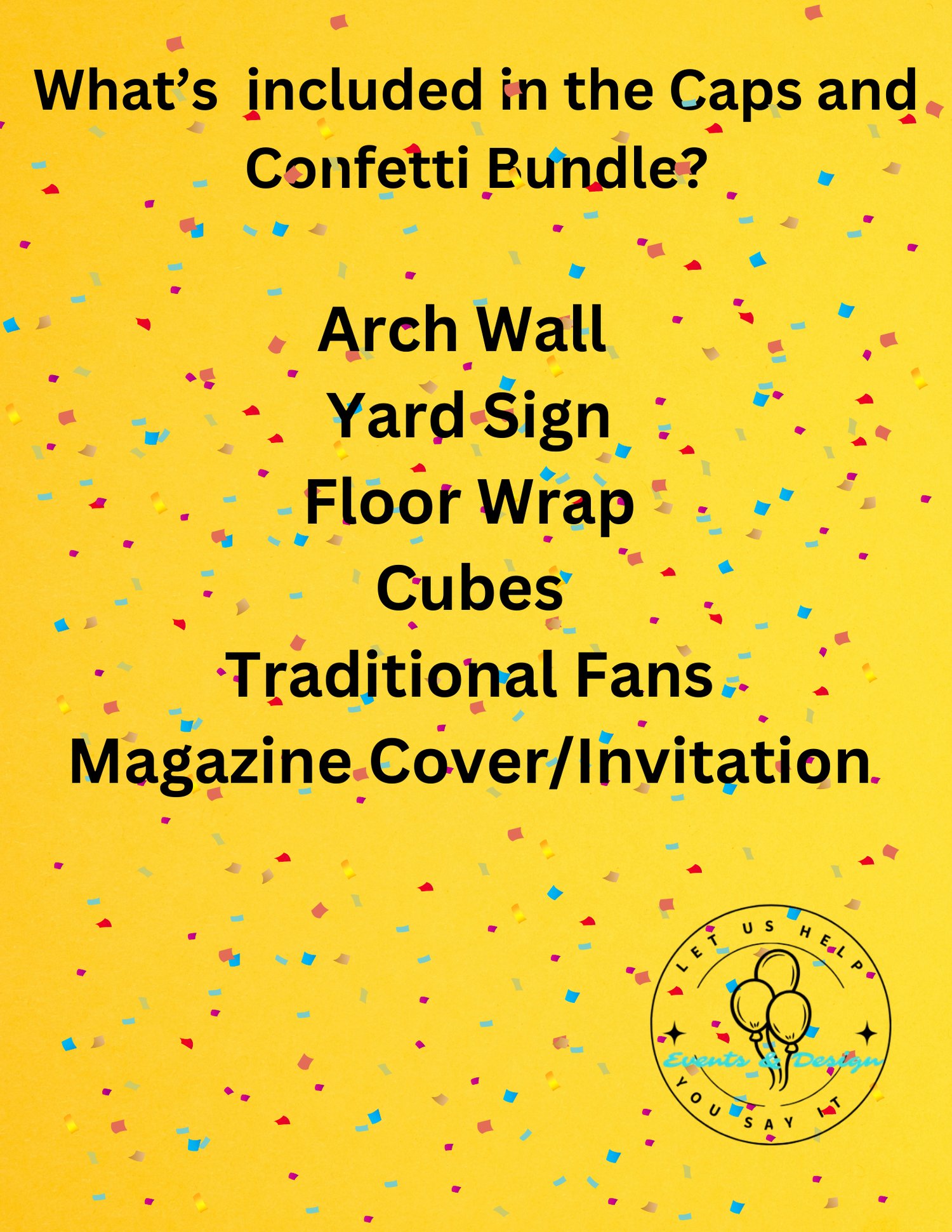The Caps and Confetti Bundle has the perfect amount of graduation swag to make your event pop and honor your graduate. This template is easy to use.