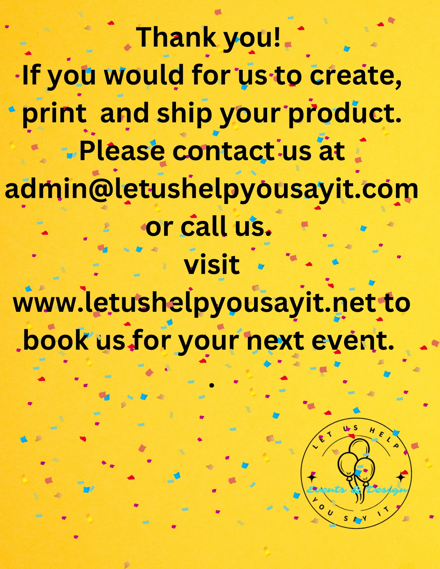 visit us at: www.letushelpyousayit.net to book us to design your event.