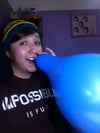 Cleo takes on the challenge and blows to pop this blue balloon. Very nice!