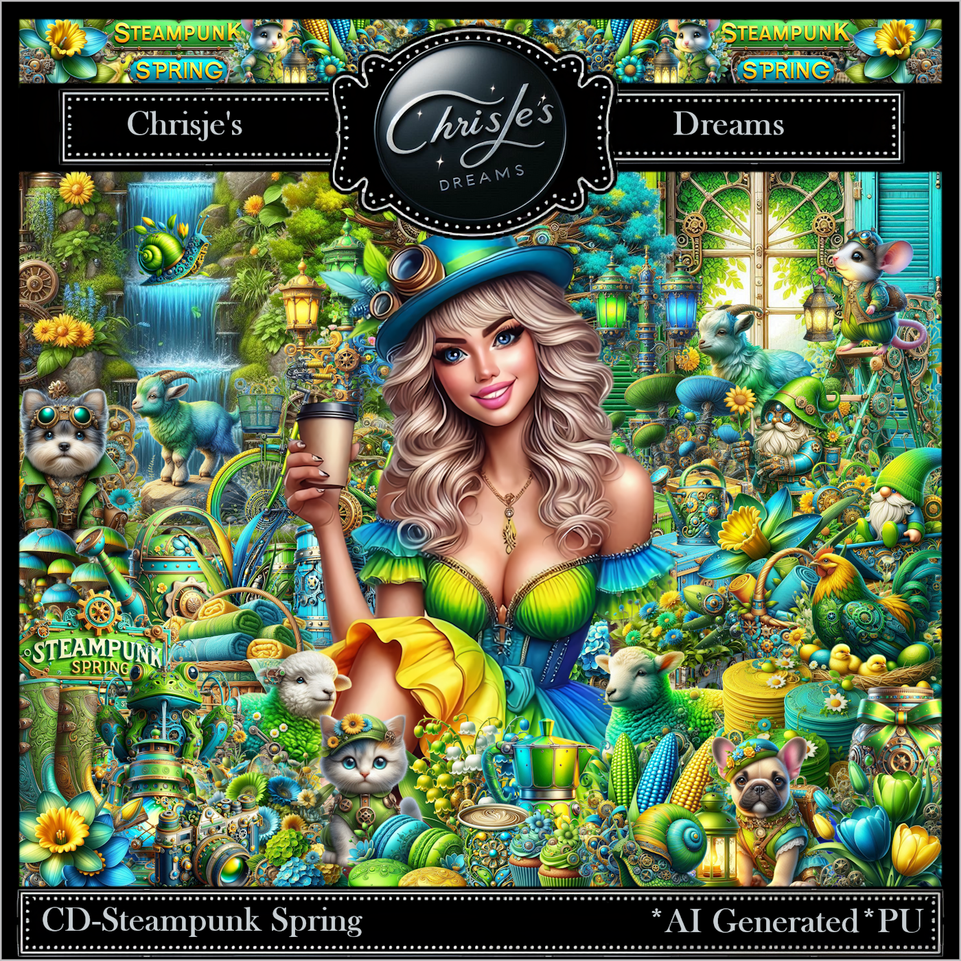 Steampunk Spring is a🌷🌸 spring🌸🌷 themed kit which contains 191 elements, 12 Frames, 20 papers and 3 beautiful AI generated png tubes by Chrisje's Dreams