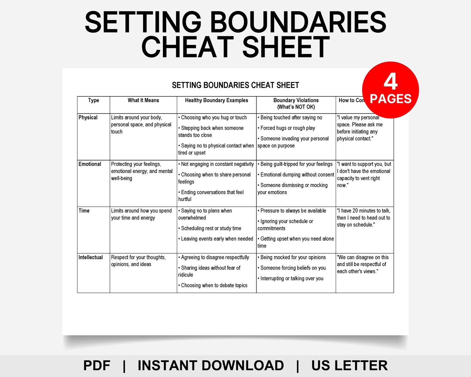 This Setting Boundaries Cheat Sheet provides a helpful overview for quick reference. Use it as a guide to support understanding, reflection, and skill-building.