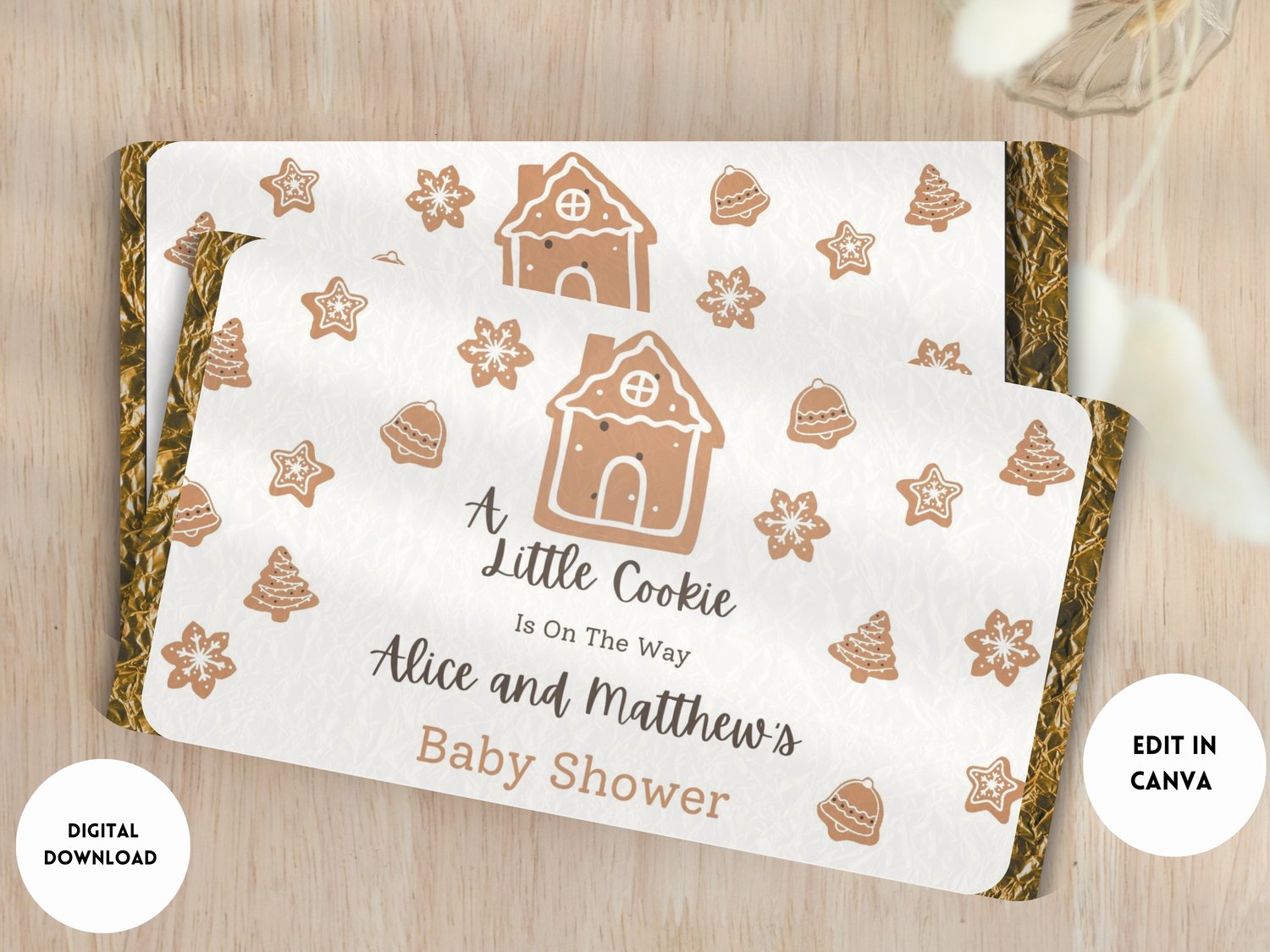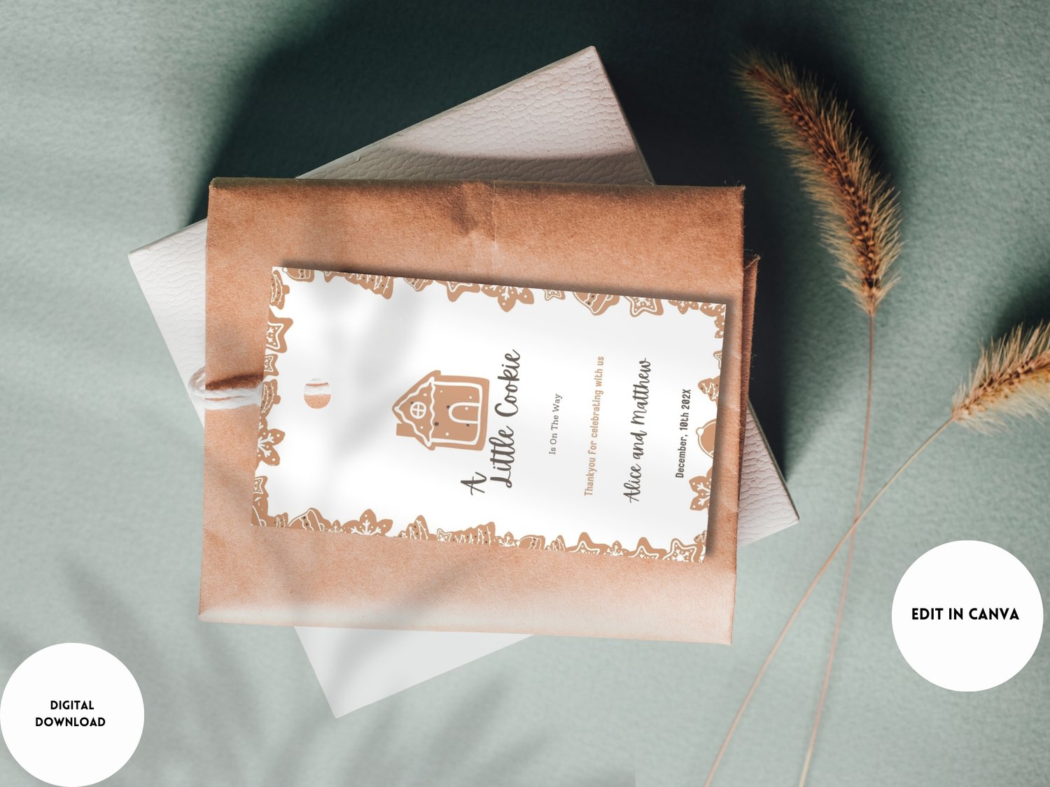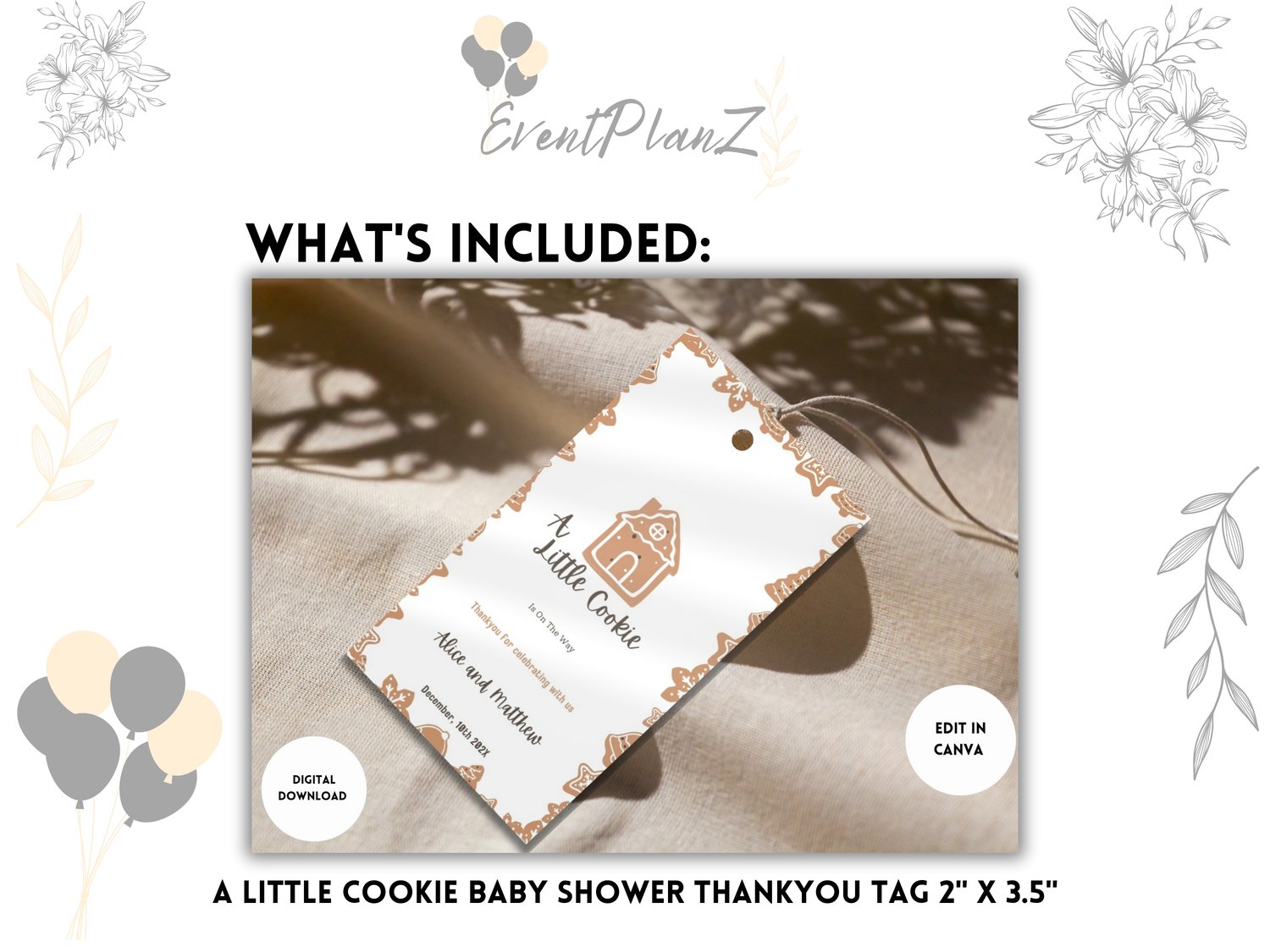 A Little Cookie Is On The Way Baby Shower Thankyou Tag | Gingerbread Gender Reveal Party Favor Gift Label | Canva Template | Printable