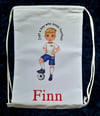 Beautiful personalised football gym bag - fits a full kit, featuring our England strip boy doll, choice of hair, skin and eye colours