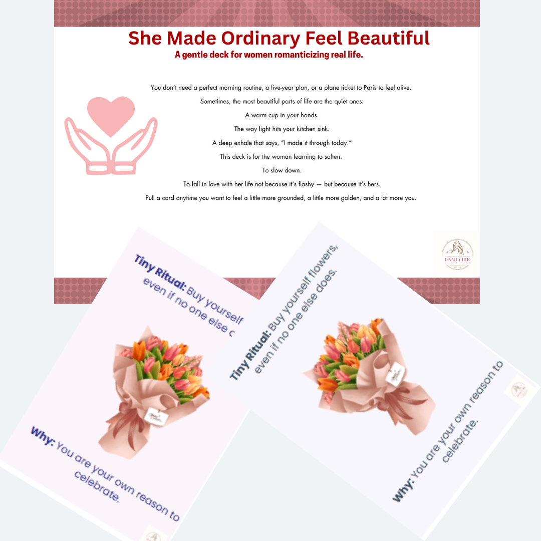 This is a 30-card deck created for the woman who’s learning to slow down, soften, and fall in love with her life — not because it’s perfect, but because it’s hers.