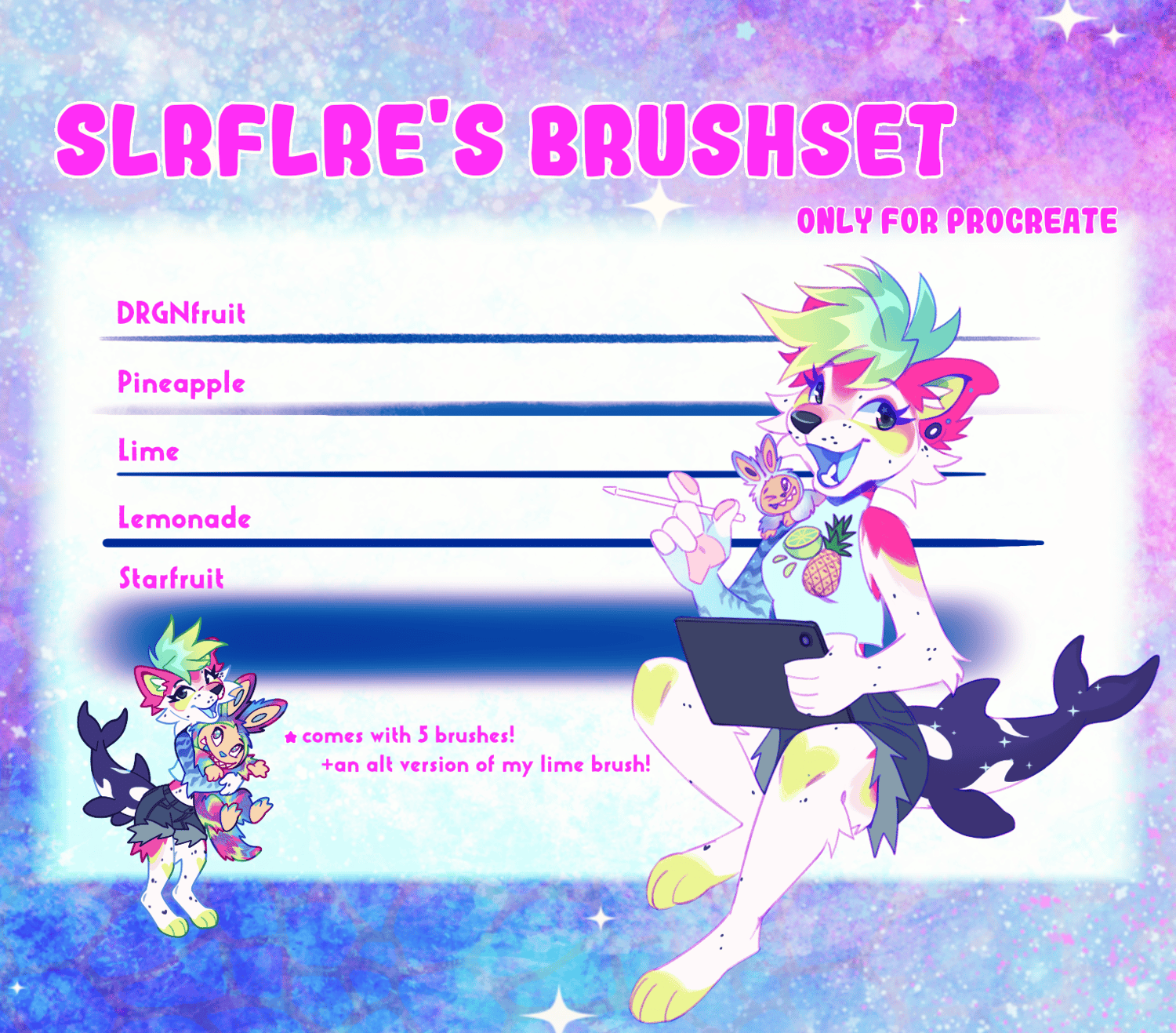 Includes 5 brushes (+1 alt "slower" version of my Lime brush! I use this brush for lining.)