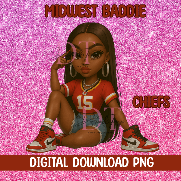 Bring Midwest heat to your creations with our Midwest Baddie PNG! Styled in bold red and white with glam details and confident energy, this custom-designed baddie is perfect for football fans who rep the heartland with pride. Whether you're crafting shirts, tumblers, mugs, or small business merch, this design adds fierce flair to any game day project. Delivered as a high-resolution PNG with a transparent background, she’s ready to slay your DIY and commercial creations.