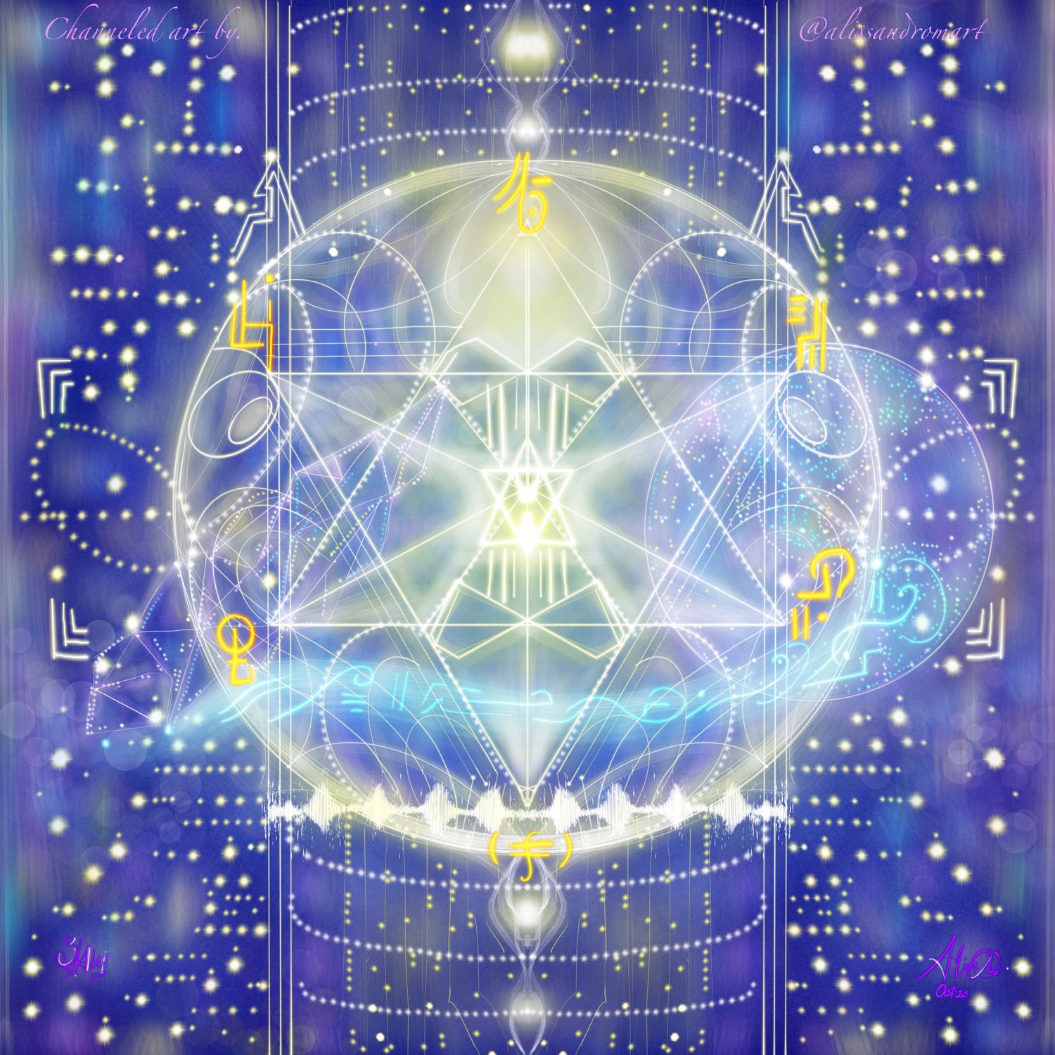Remember that the art of channeled light language is done through forms of frequency, vibration and geometry, as well as light language codes, which is an energetic QR code that unfolds your own inner wisdom. Using this channeled art requires discipline for contemplation and meditation, as well as taking responsibility for oneself in the process of healing what emerges from our layers of consciousness and energy field. The use of these channeled art and frequency tools is by your choice and in the use of your free will. This channeled art is not intended to replace any professional or medical assistance. If you have serious health problems, consider seeking a certified professional.