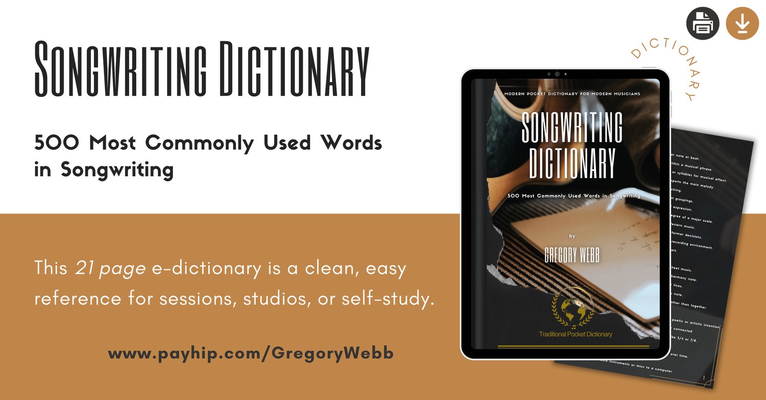 📘 Every craft has its own language—songwriting is no exception. This 21-page Songwriting Dictionarydefines 500 essential songwriting and composition terms in clear, modern language. Perfect for quick lookups in studio sessions or self-study.