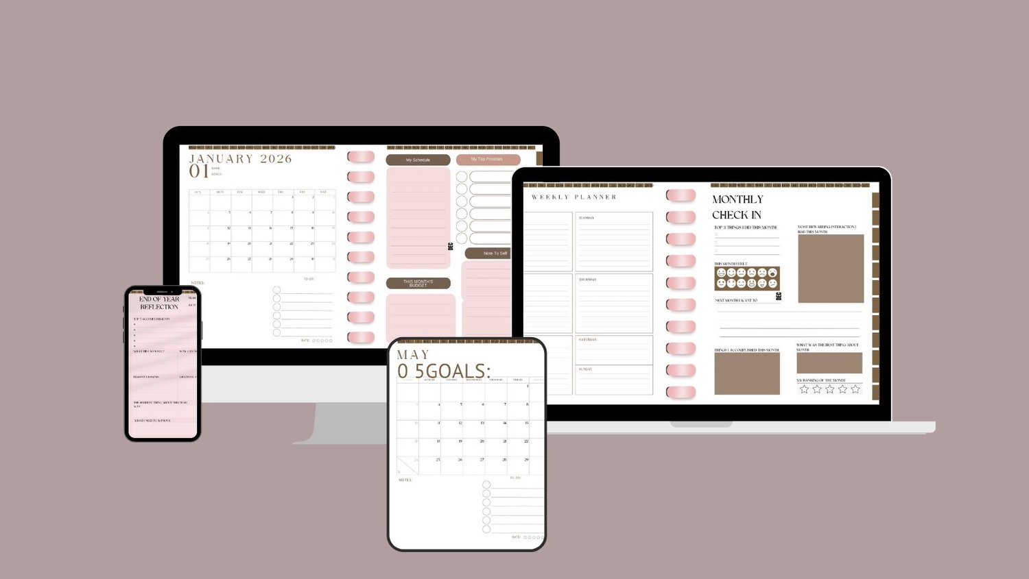 Plan your year with ease and style using the 2026 Hyperlinked Digital Calendar Planner. Designed for seamless navigation, this planner features clickable monthly and weekly tabs so you can jump straight to the page you need. Perfect for iPad, tablet, laptop, or phone, it offers a clean neutral-beige aesthetic with soft pink accents for an elegant touch.