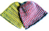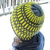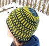 Yellow and gray hat shown in Adult L using Rohrspatz and Wollmeise Merino DK in 47 Ag (Color A) and Zarte Knopse (Color B)