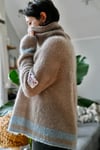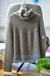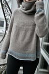 Introducing Orion, a captivating oversized top-down round yoke sweater designed to elevate your knitwear collection. Boasting a distinctive two-color motif, a generously loose and swingy silhouette, and an eye-catching long turtle neck collar, Orion is a contemporary and chic addition to any wardrobe. The lengthened sleeves add a touch that makes Orion not just a garment; it’s a statement piece that combines comfort, style, and modernity. With its thoughtful design and customizable features, this sweater is bound to become a cherished favorite in your handmade collection, ensuring you stay comfortably warm while exuding effortless style.