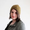 You have the option of making either a hat that will sit fitted around the crown of the head, or one with a slouchy fit. If desired, you also have the option of working a longer brim than specified (note that this will affect your final measurements and yardage requirements).