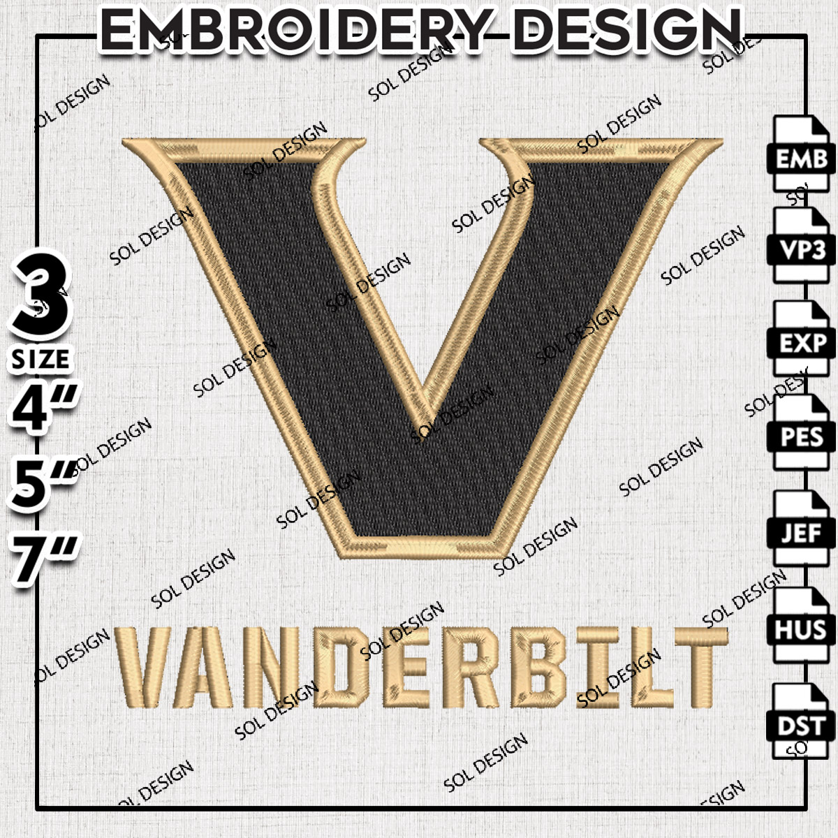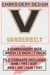 NCAA V Vanderbilt College Football Team Logo Embroidery Designs, NCAA Vanderbilt Commodores Machine Embroidery Files, NCAA Logo embroidery designs, NCAA Vanderbilt Logo, Digital Download