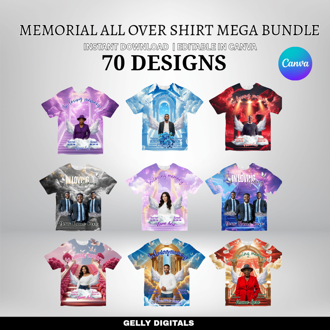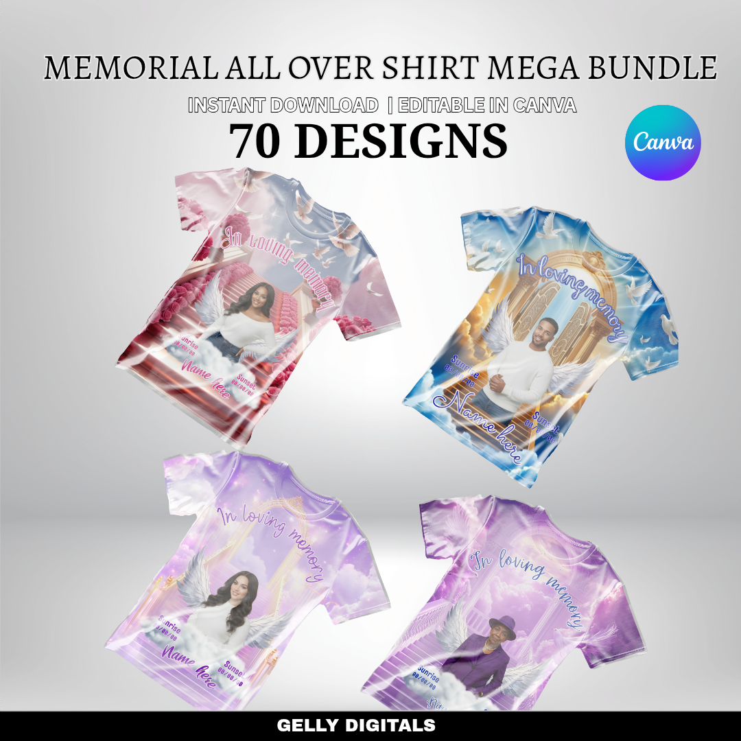 Keep cherished memories alive with this Memorial All Over Shirt Mega Bundle Featuring 70 professionally designed templates, each layout is editable in Canva—making it easy to personalize with photos, names, and dates. Perfect for tributes, memorial events, or custom remembrance shirts.