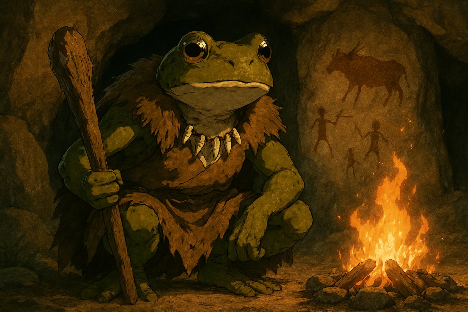 Travel back to the Stone Age with the Caveman Frog! Equipped with a primitive club, this illustration captures the prehistoric charm and fun. Perfect for anyone who loves quirky, historical-inspired artwork with a playful twist.