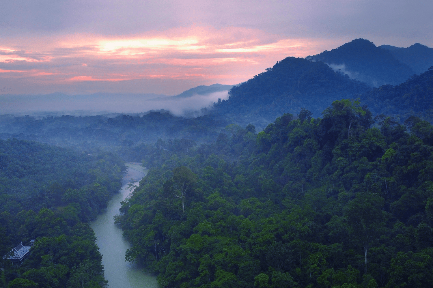 A peaceful dawn awakening over the rainforest of Tangkahan