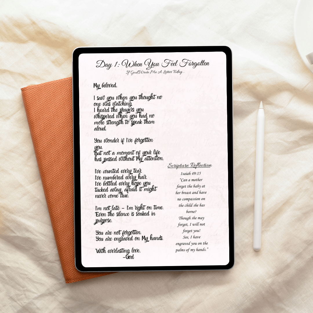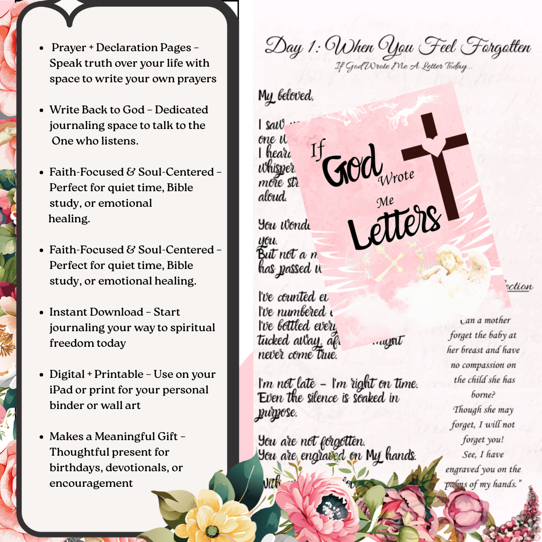 If God Wrote Me Letters is a 30-day digital devotional journal that invites you into a daily conversation with God — one filled with love, truth, and gentle guidance.
