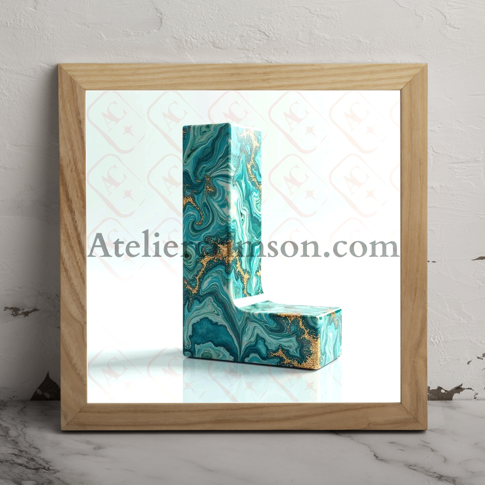 The letter L marble blue green gold download Now this high quality AI-generated image, perfect for adding a touch of tranquility and creativity to any space.
