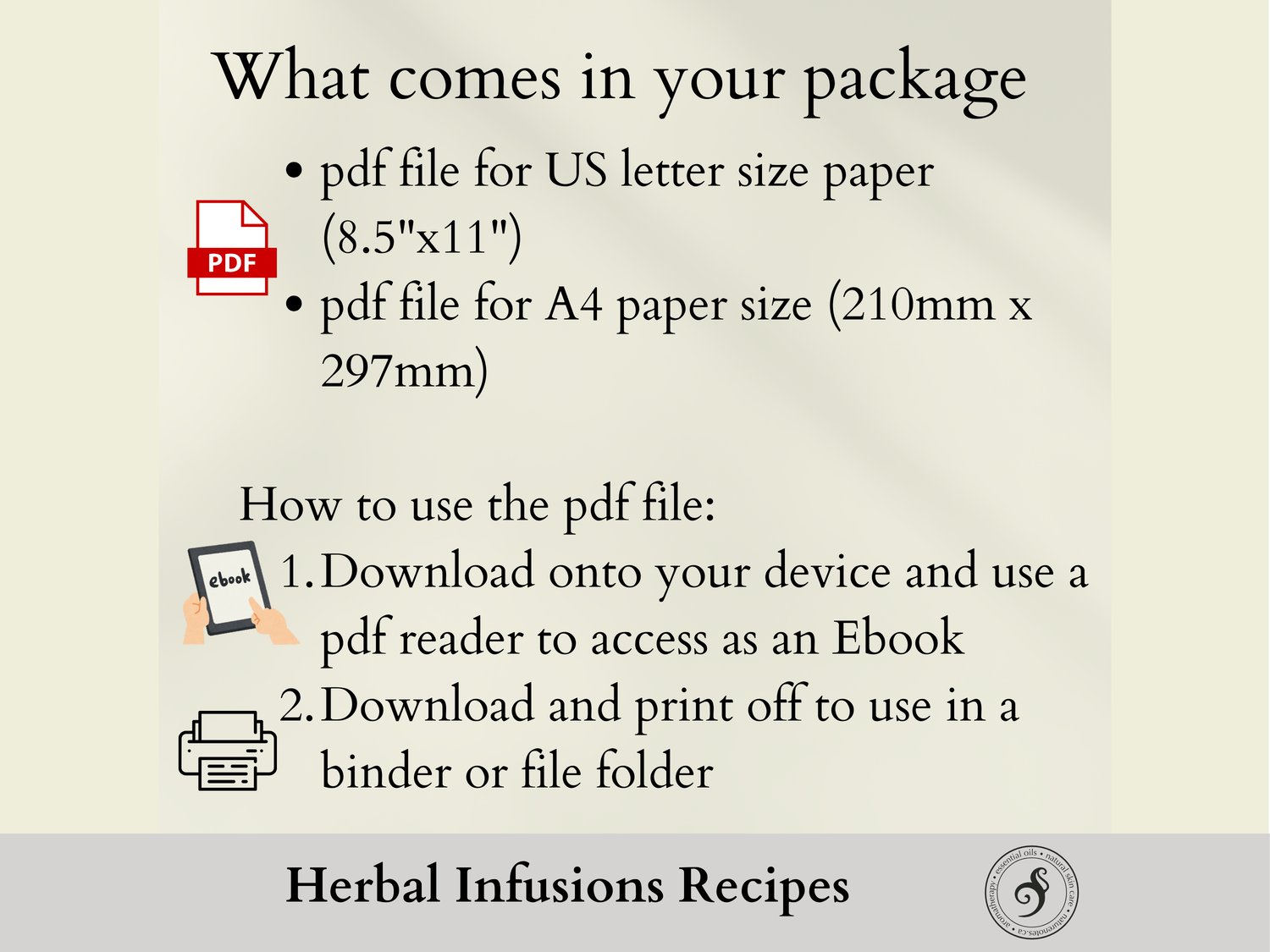 ✔️ 14 Infusions recipes, full page each, with color pictures