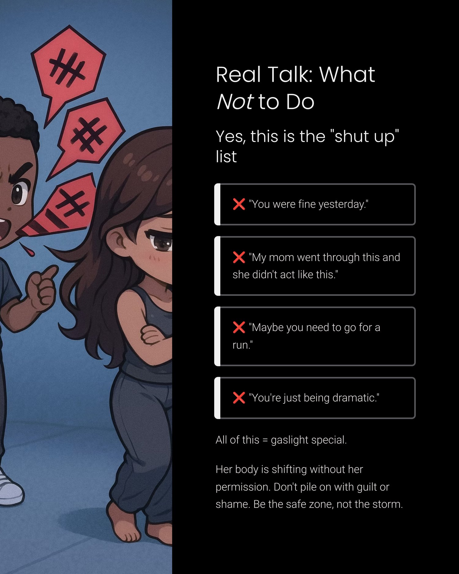 This guide breaks down what’s really happening in her body, what not to say, and how to stop being another clueless partner making it worse.