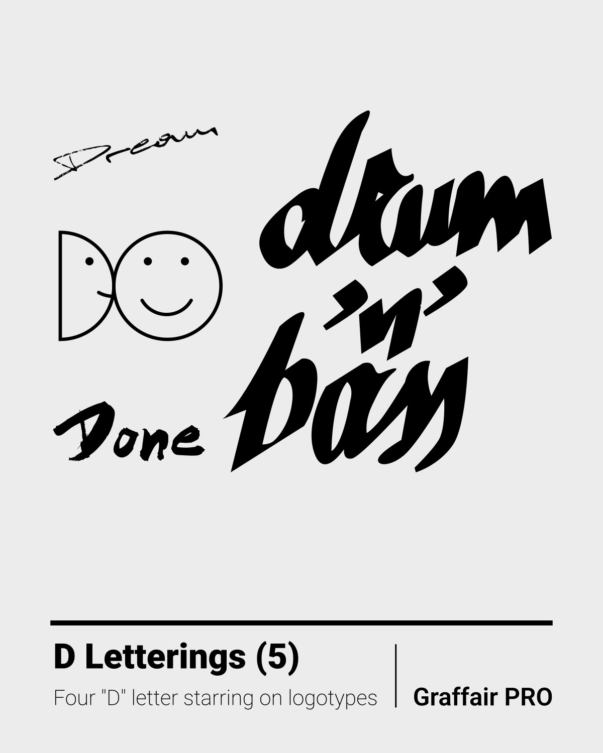 D Letterings (5): The 5th set of "D" logo/letterings with four original designs. These letterings are included among 800 other extraordinary ones in the "800 SVG Letterings" bundle edition.
