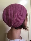 This product is a pattern for a tunisian crochet slouch hat in two sizes.