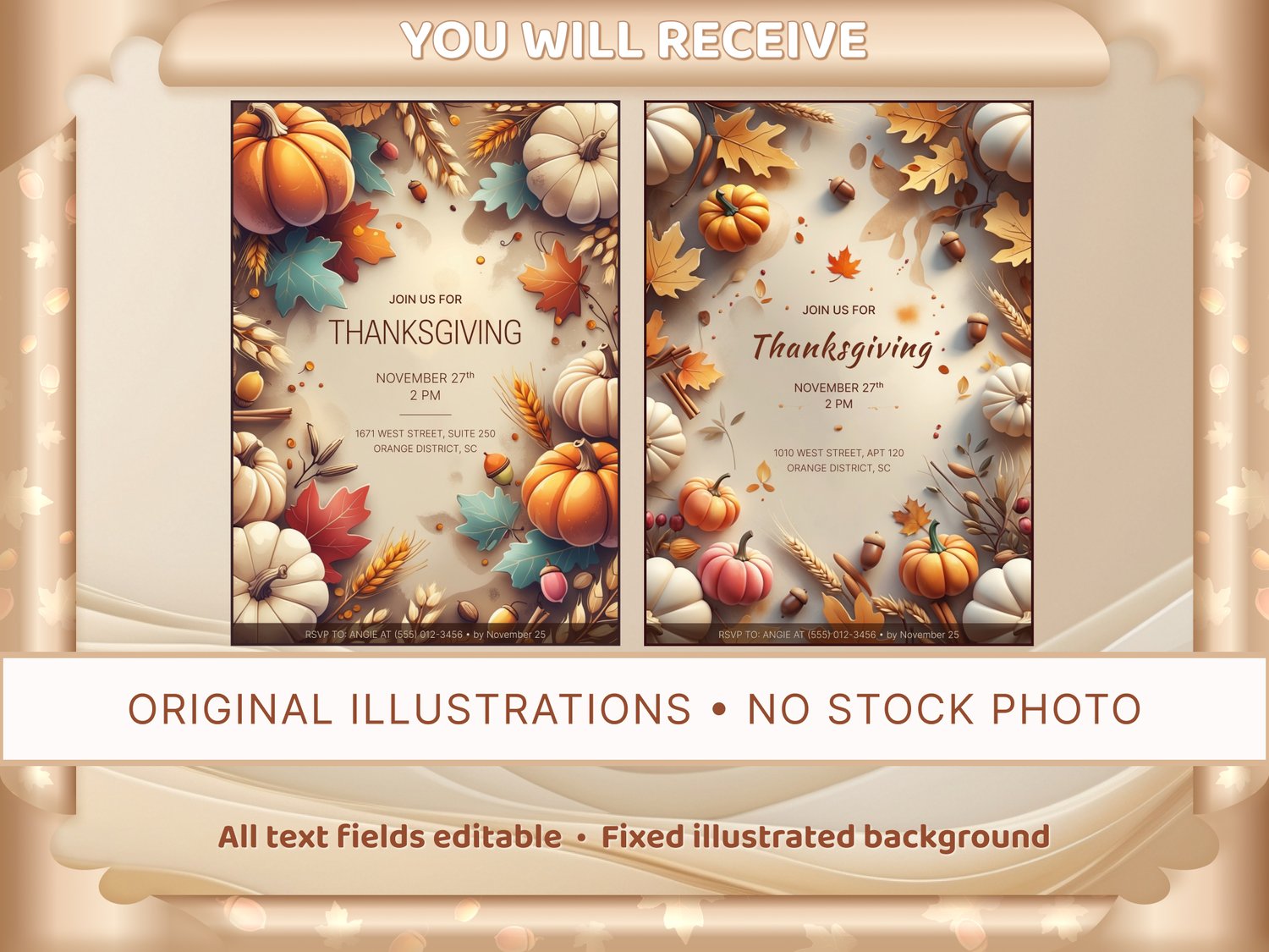 Designed as part of our Modern Thanksgiving Collection, this invitation features soft seasonal colors, warm pumpkins, and a bright neutral background β perfect for family gatherings, school events, Friendsgiving, or a cozy fall celebration.