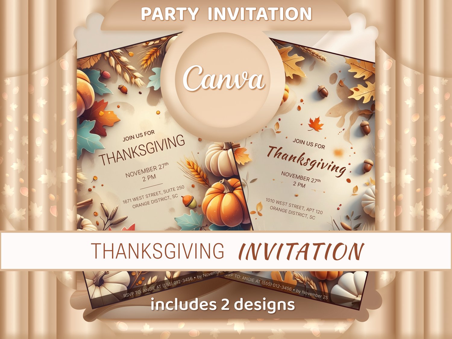 Light Thanksgiving Invitation β Modern Design β Editable Canva Template