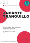 This arrangement presents a captivating rendition of the serene and mesmerizing composition, "Andante Tranquillo" by Charles Harford Lloyd, expertly crafted for a Brass Quintet. Immerse yourself in the graceful beauty of this timeless piece as it resonates through the rich harmonies and warm tones of the brass ensemble. With careful attention to preserving the original essence of the composition, this arrangement captures the delicate nuances and emotional depth of the music, allowing each instrument to shine in its unique role. Whether you're a brass player seeking an engaging performance piece or an avid listener in search of enchanting melodies, this Brass Quintet arrangement of "Andante Tranquillo" promises to deliver an unforgettable musical experience. Elevate your repertoire and captivate your audience with this exquisite arrangement, where elegance meets brass brilliance in perfect harmony.