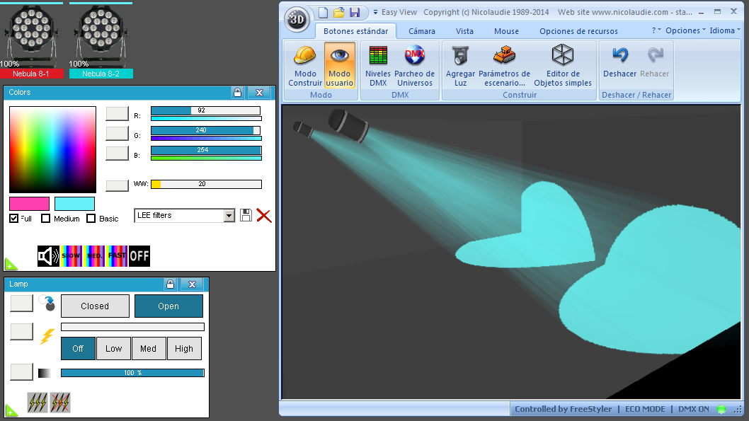 Esta Librería SSL2 está optimizada para trabajar con Magic 3d Easy View. Es decir para ver una representación 3D de las secuencias que estemos realizando con Freestyler, QLC+ o cualquier otro soft que se conecte con Magic 3d.