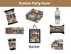 The Barber Shop editable Canva design and mockup for party favor items used for marketing is a sleek and stylish template, perfect for promoting a barber shop's brand during events. The design features a classic barber shop aesthetic with elements like barber poles, scissors, razors, and combs, set against a backdrop of bold, vintage-inspired patterns and colors such as deep reds, blacks, and whites. Customizable text areas allow for the inclusion of the shop's name, logo, and contact information, as well as personalized messages for event attendees. The mockup includes a variety of party favor items such as stickers, tags, and small product labels, each designed to reinforce the barber shop's branding. This template is easily editable, allowing users to adjust colors, fonts, and images to create unique, professional-looking marketing materials that leave a lasting impression.